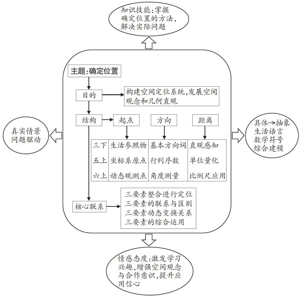 “确定位置”是小学数学“图形与几何”领域的重要内容。在《义务教育数学课程标准(2022年版)》(以下简称“课标")中,该主题内容与空间观念、几何直观等核心素养密切相关,旨在帮助学生掌握空间关系的量化表达方法,为他们后续理解更抽象的数学概念奠定基础,这也是其核心价值所在。然而,一些教师在教学“确定位置"时,缺乏以整体视角统筹各章节、形成通用确定位置方法的设计,而这恰恰是实现上述素养目标的关键环节。(剩余4340字)