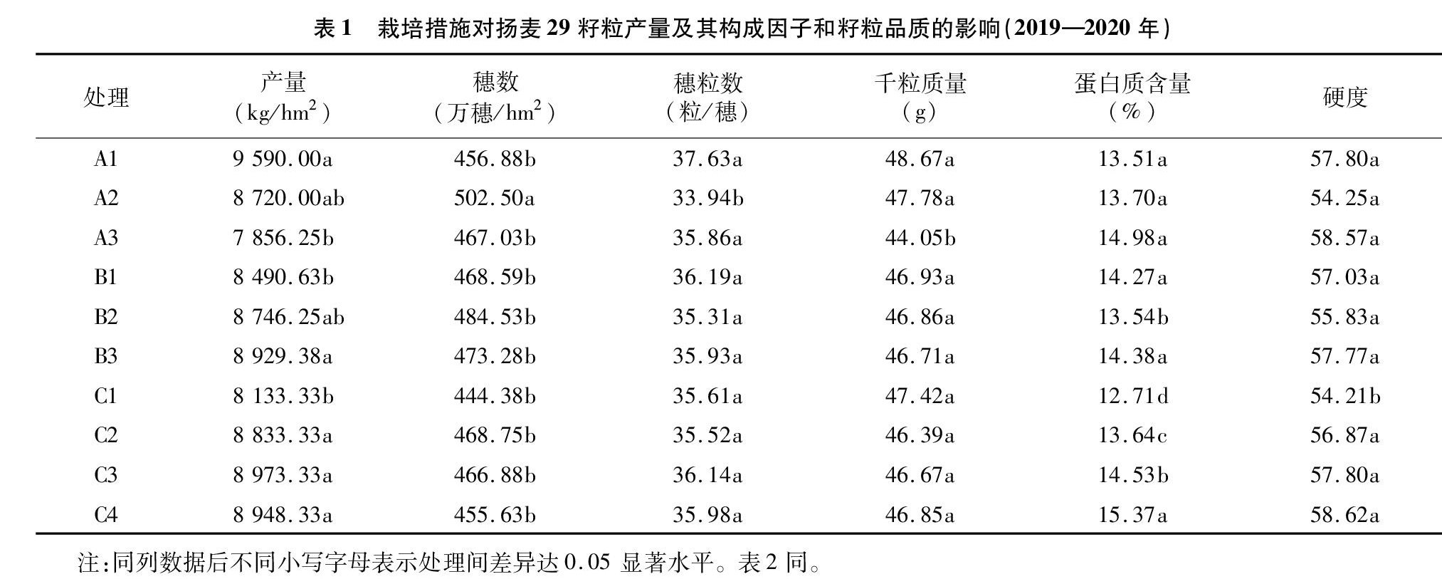 强筋小麦扬麦29产量和籽粒品质对栽培措施的响应