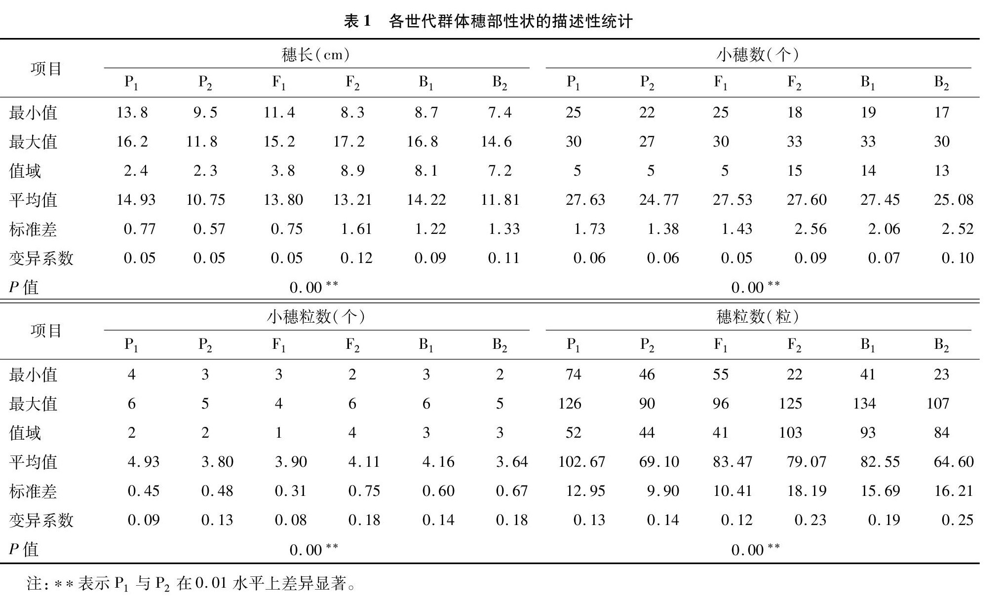 摘要:为明确大穗型小麦创新种质穗部性状的遗传机制,提高小麦高产育种效率,以漯新001和漯丰4446为亲本构建6世代(P1、P2、F1、F2、B1、B2)联合群体,采用植物数量性状遗传体系主基因+多基因混合遗传模型分离分析方法,研究穗长、小穗数、小穗粒数、穗粒数等穗部性状的遗传模型。结果表明,穗长属于2对加性主基因+加性-显性多基因混合遗传模型,遗传效应以加性效应为主,显性效应为辅,均为正向增效,易在早代通过基因加性效应的累加进行选择;小穗数属于2对加性-显性-上位性主基因+加性-显性-上位性多基因混合遗传模型,以主基因遗传效应为主,2对主基因为等加性等显性正向效应,但具有较强的负向上位性效应,在F2和B2群体主基因遗传率高,在育种中易采用单交及丰产亲本回交的方式构建群体利用单个主基因的遗传效应在早代进行选择;小穗粒数属于2对主基因作用的加性-显性-上位性模型,遗传效应以显性效应为主,同时具有较强的正向显性×显性上位性效应,稳定纯合时能起到较好的效果,易在高代进行选择;穗粒数属于加性-显性-上位性多基因遗传模型,主要受多基因控制,F2、B1和B2群体的多基因遗传率为63.38%、50.79%和53.91%,育种中要综合考虑多基因和环境因素的影响。(剩余7632字)