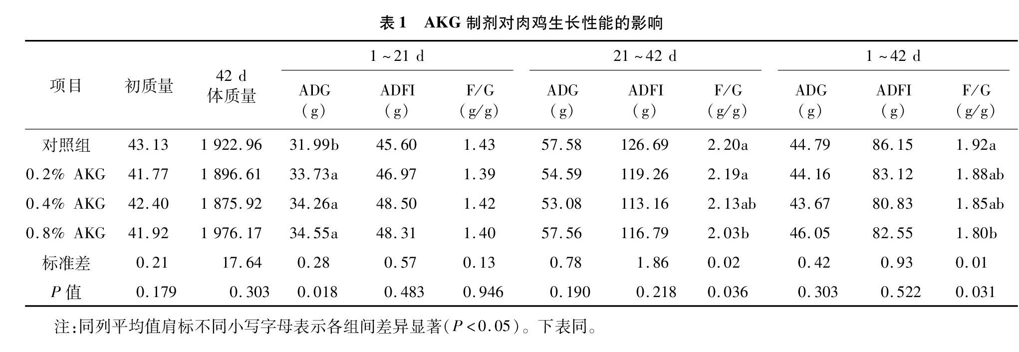 日粮添加α-酮戊二酸制剂对肉鸡生长性能及消化、代谢的影响