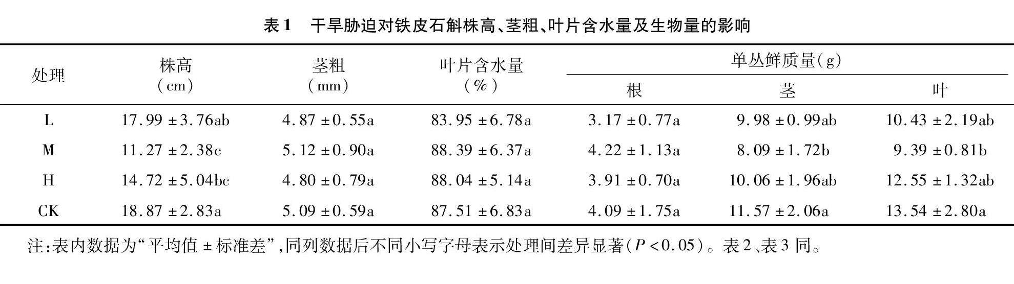 干旱胁迫对铁皮石斛生理及不同部位活性成分的影响