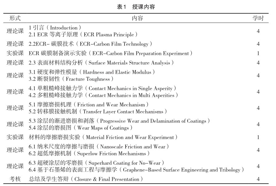 全英文“纳米表面工程与摩擦学”课程教学体系设计与实践