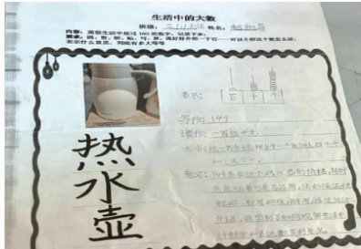 新课标强调,数学教育要引导学生用数学的眼光观察现实世界,用数学的思维解决实际问题。所以在开展第七单元的学习伊始,我就设计了一个实践活动一一利用五一假期"到生活中寻找大数”,通过写一写、画一画、拍一拍等多种形式,收集生活中的数学信息,感受数字之美。