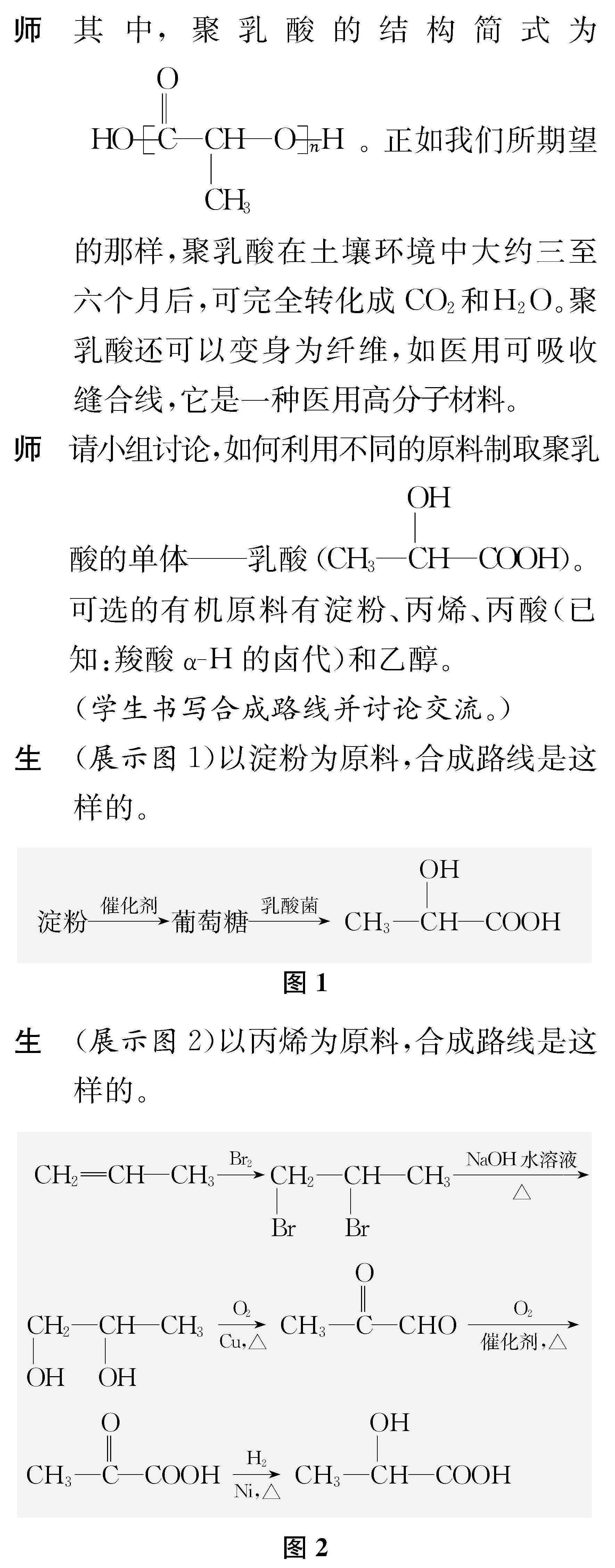 摘 要:《有机合成》一课,通过课标研读、教材比较、学情分析,明确教学目标和教学思路,设计的教学过程为:以环境热点问题中的有机高分子“微塑料”为情境素材,通过乳酸合成路线的设计和讨论,构建有机合成认知模型,并运用该模型合成新的有机高分子,深化认知结构。