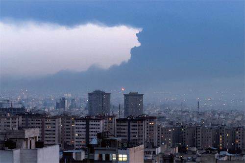 2026年3月8日,遭袭储油设施冒出的浓烟笼罩伊朗首都德黑兰上空