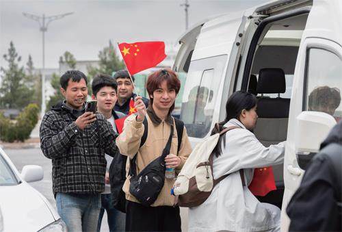3月3日,在土库曼斯坦萨拉赫斯口岸,从伊朗撤离的中国公民在进入土境内后登上车辆