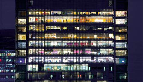夜间灯火通明的办公楼