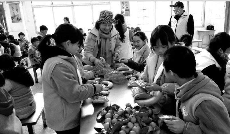 2 月12 日,永州市冷水滩区萱娅暖阳学校内,十多名志愿者与孩子们交流趣事,分享零食,孩子们露出灿烂的笑容。(剩余0字)