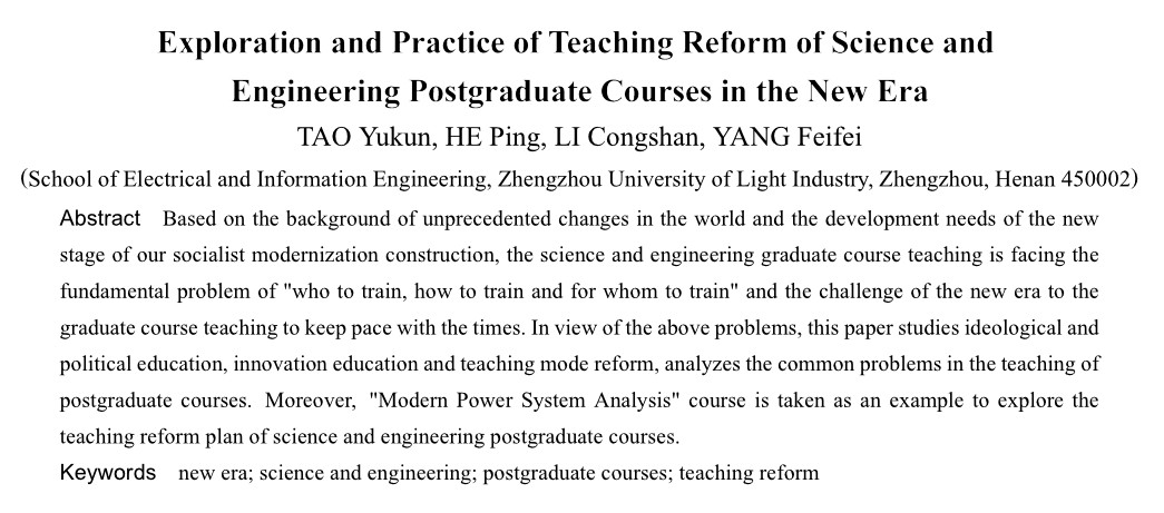 摘要 立足于世界百年未有之大变局的时代背景和我国社会主义现代化建设新阶段的发展需求,理工科研究生课程教学面临着“培养什么人、怎样培养人、为谁培养人”这个根本问题和新时代研究生课程教学应与时俱进的挑战。针对上述问题,文章从思政教育、创新教育和教学模式改革等方面展开研究,剖析研究生课程教学中普遍存在的问题,并以“现代电力系统分析”课程为例,探索理工科研究生课程的教学改革方案。(剩余4694字)
