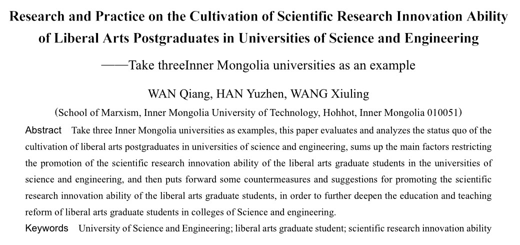 关键词 理工科院校;文科研究生;科研创新能力
