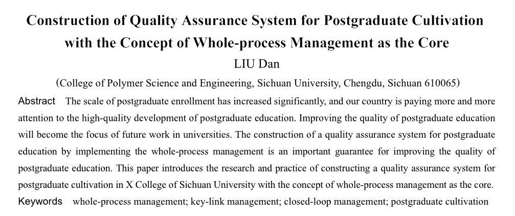 关键词 全过程管理;关键环节管理;闭环式管理;研究生培养