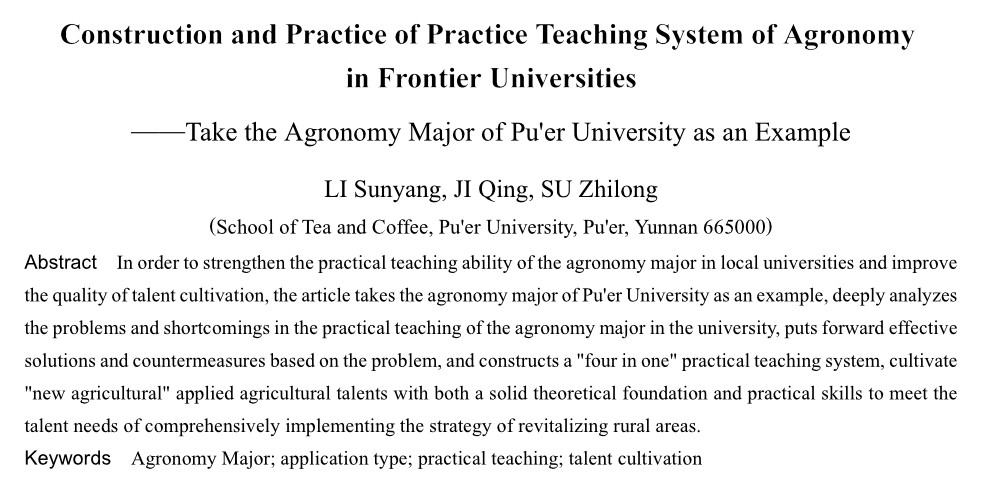 摘要 为了加强地方院校农学专业的实践教学能力,提高人才培养质量,文章以普洱学院农学专业为例,深入剖析了该院农学专业实践教学存在的问题和不足,以问题为导向,提出行之有效的解决措施和对策,构建“四位一体”实践教学体系,培养既掌握扎实理论基础又具有实践技能的“新农科”应用型农业人才,以适应全面实施乡村振兴战略的人才需求。(剩余4880字)