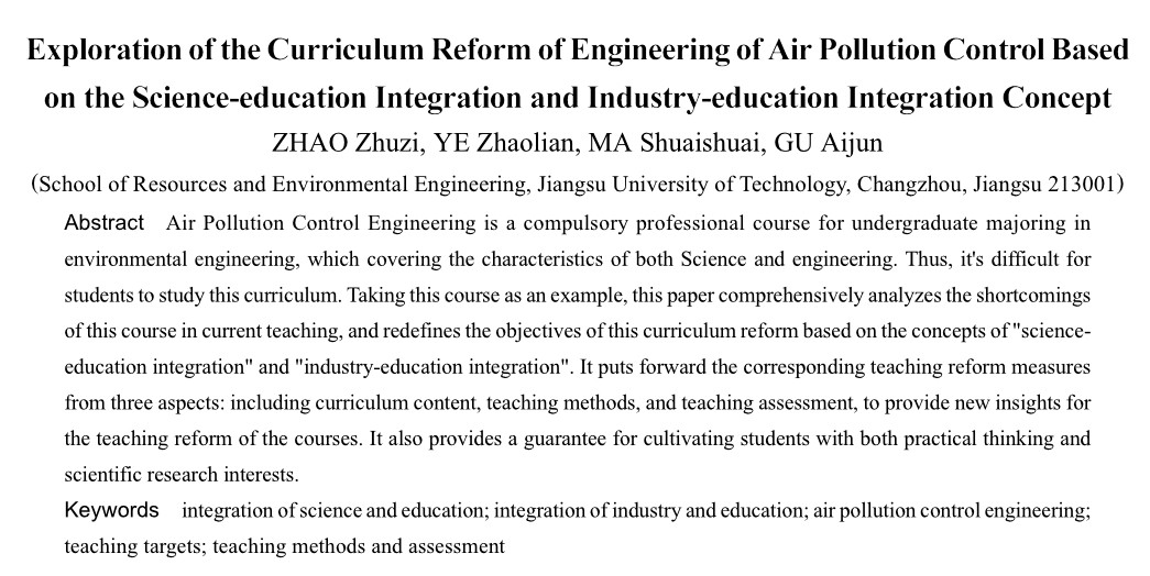 科教、产教融合理念下大气污染控制工程课程建设探索