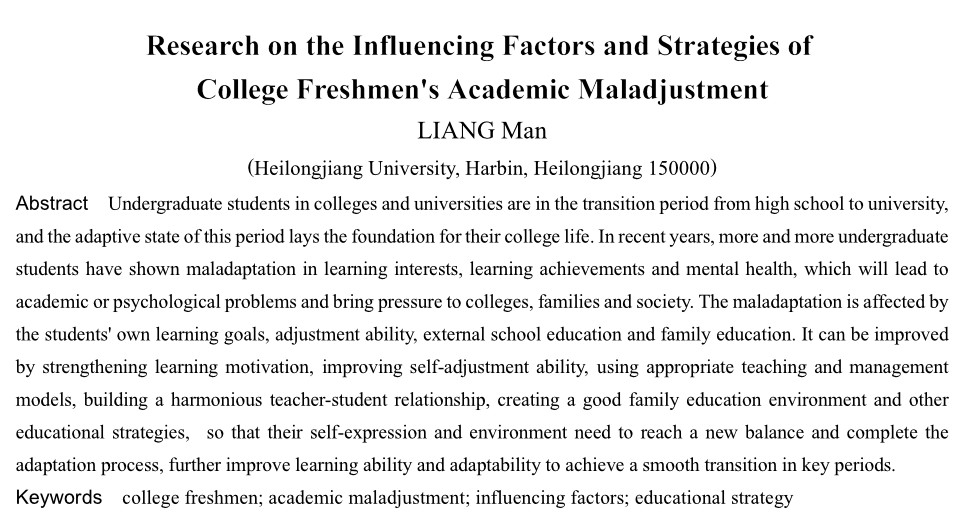 摘要 高校本科新生处于从高中到大学的过渡期,该时期的适应状态为其大学生活打下基础。近些年越来越多本科新生在学习兴趣、学习成绩、心理健康方面表现出适应不良,这将导致其出现学业或心理问题,给高校、家庭、社会带来压力。适应不良受学生自身学习目标、调节能力、外部学校教育和家庭教育的影响,可通过增强学习动机,提高自我调节能力、使用恰当的教学与管理模式、构建和谐师生关系、营造良好家庭教育环境等教育策略加以改善,使其自我表现与环境需要达成新的平衡,完成适应过程,进一步提升其学习能力和适应能力,实现关键时期的平稳过渡。(剩余4710字)
