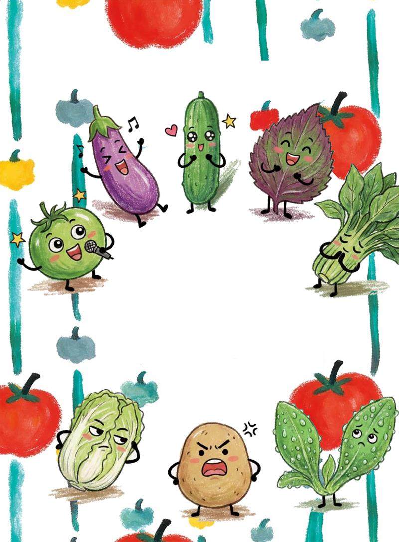 夏天,菜园里的蔬菜们兴高采烈地展示着自己的新颜色:茄子紫得发亮,黄瓜青翠欲滴,空心菜绿得鲜嫩……只有番茄独自待在角落里,耷拉着脑袋,闷闷不乐。