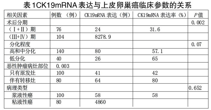 上皮性卵巢癌患者外周血中CK19mRNA水平及其临床意义