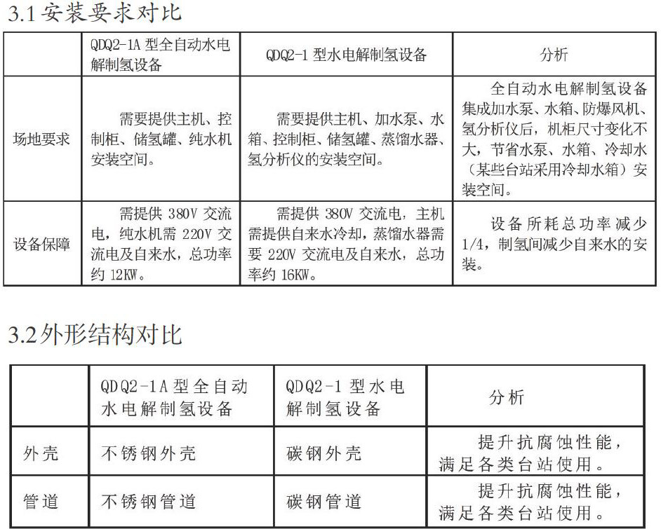 QDQ2-1A型全自动水电解制氢设备和QDQ2-1型水电解制氢设备对比分析