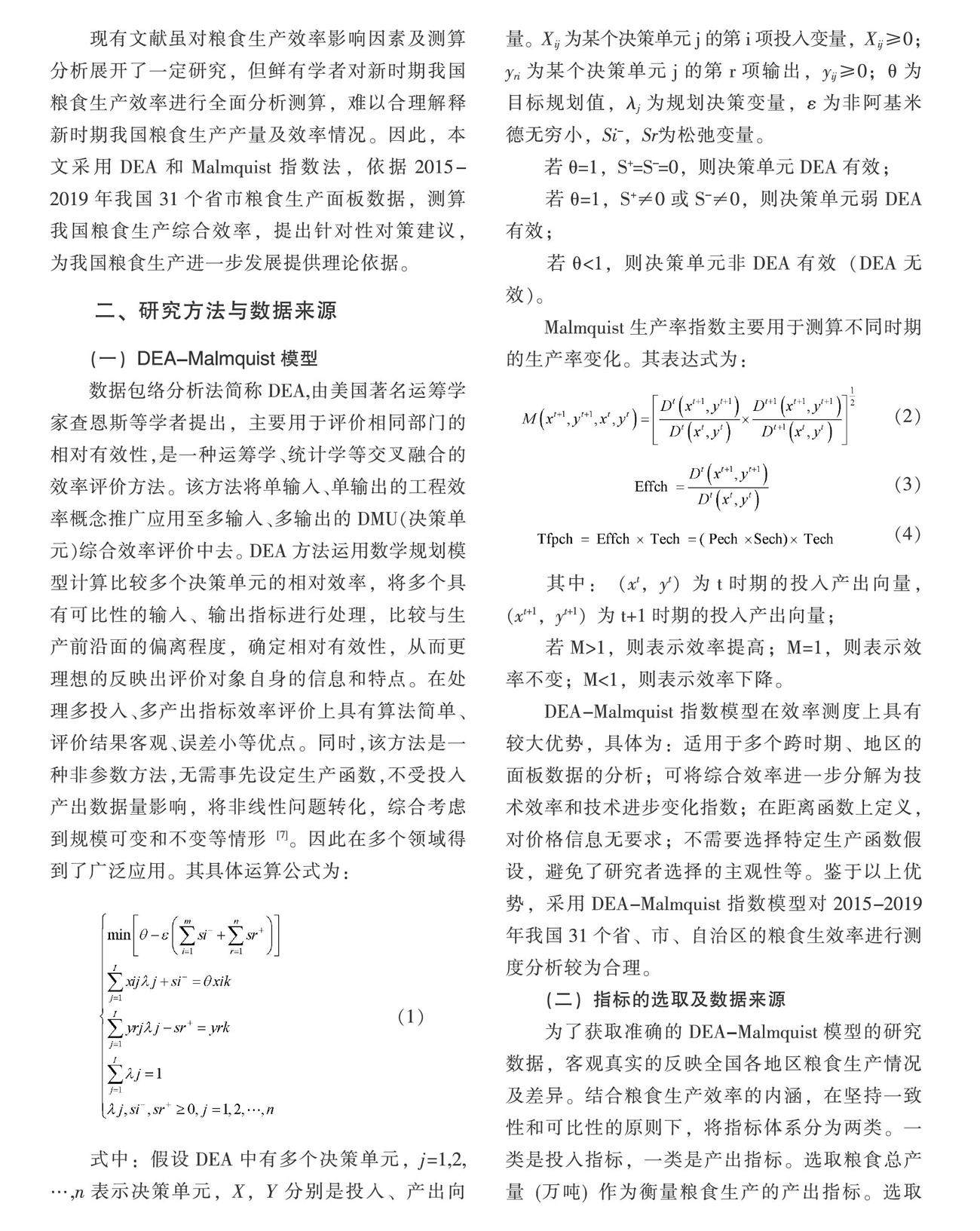 基于DEA-Malmquist指数模型谈新时期我国粮食生产效率测度实证研究