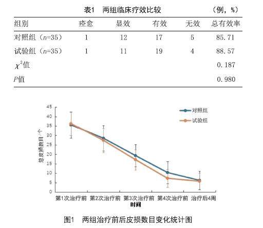 [摘要]目的:比较30%复合酸(24%水杨酸+6%杏仁酸)与30%水杨酸治疗轻中度痤疮的临床效果及不良反应。方法:选择2022年1月-2023年5月在3家医院就诊的70例轻中度痤疮患者作为研究对象,随机双盲分为对照组(35例)、试验组(35例)。对照组使用30%水杨酸治疗,试验组使用30%复合酸治疗,共治疗4次,并于每次治疗前以及全部治疗结束后4周随访,记录多光谱皮肤镜像工作站测量的多项指标、面部皮损计数,比较两种方法的临床疗效及不良反应。(剩余9624字)