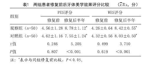 纤维桩联合全瓷冠修复大面积牙体缺损的美学效果研究