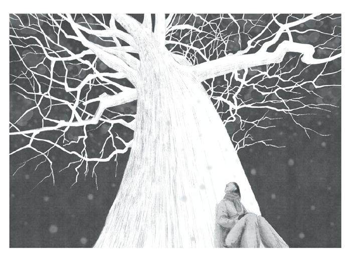 “枝”系列作品运用黑白色调与略显斑驳的肌理表现环境寂寥的氛围,用透视关系与倾斜构图突出人物与枯木间脆弱又牢固的平衡,借画树来喻人,通过刻画树木的盘根错节,以静衬动,于失衡的布局 中体现情感的涌动,彰 显出一种荒寂中孕育而 生的顽强生命力。(剩余0字)
