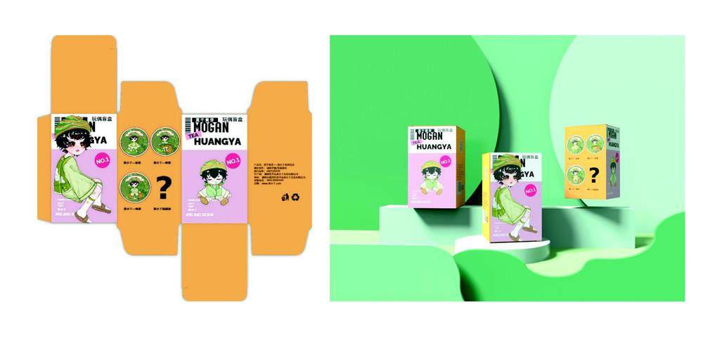 本次IP设计黄小丫(芽)参考的是绿水青山的形象,将莫干山代表的山和云都提炼为设计元素,放在娃娃的身上,进行一个融合,同时将茶叶嫩黄胖圆的形象与娃娃的形象做结合,整体设计圆滑化,看起来较为亲切可爱。以莫干黄芽的形象为设计参考的重点,将茶叶的配色与形状作为人物形象的元素加入其中,形成虚拟IP形象黄小丫,并且将以茶农采茶日常生活与黄小丫的IP形象做结合,并为其设计一套动作。(剩余38字)