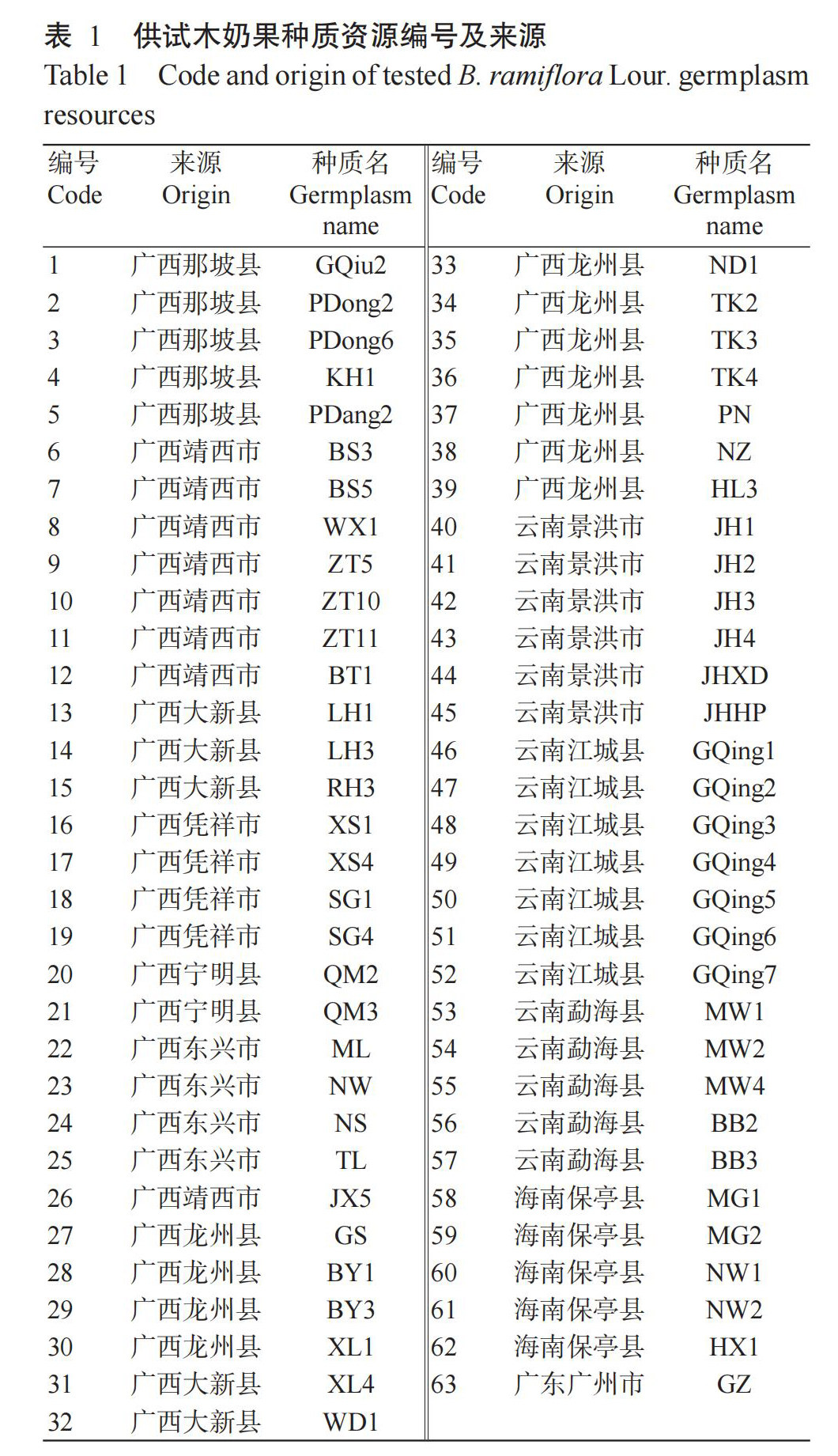 木奶果种质资源的遗传多样性分析及DNA指纹图谱构建