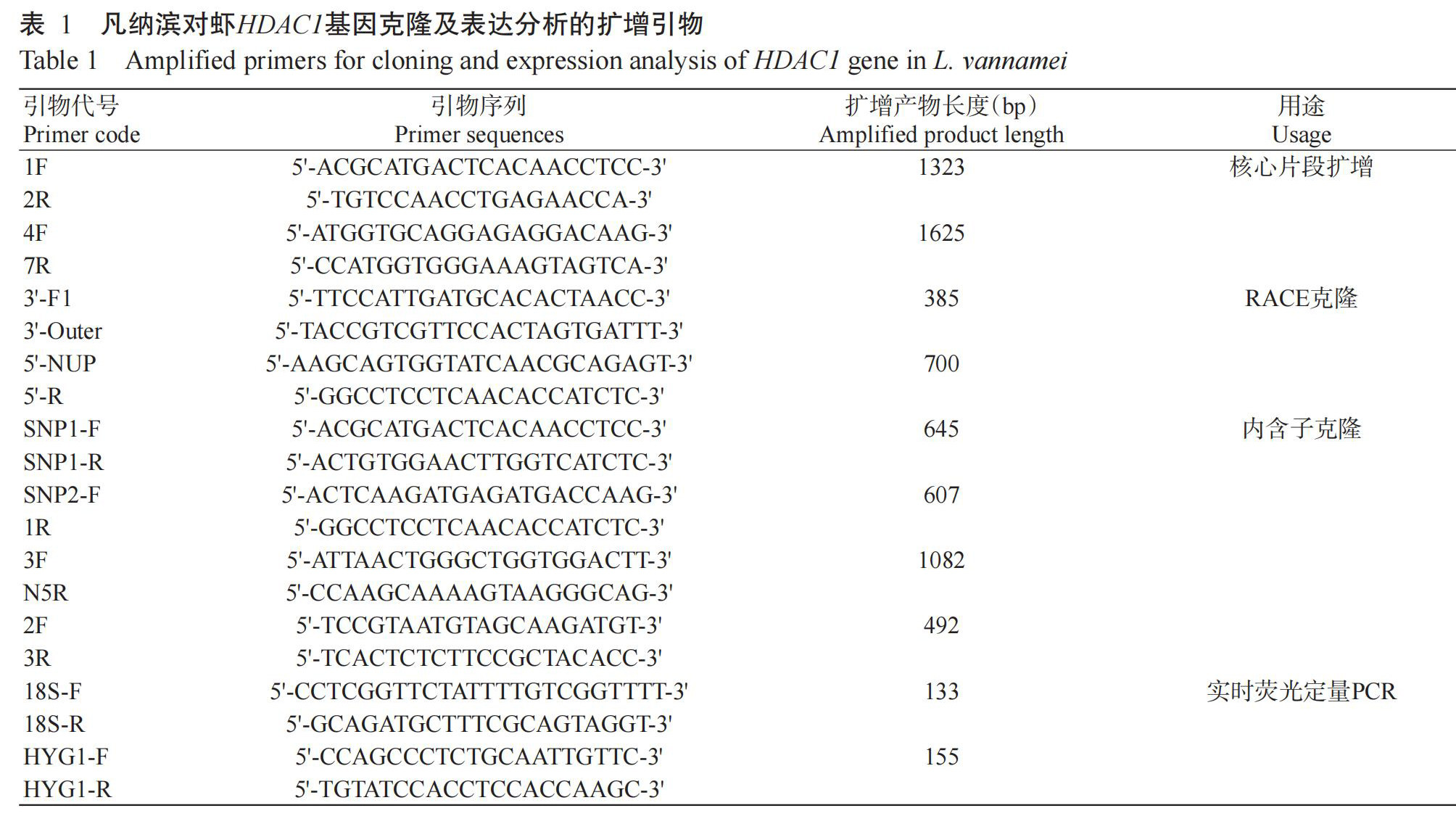 淡水养殖凡纳滨对虾生长相关基因HDAC1克隆及其表达分析