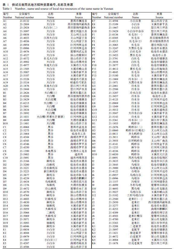 云南同名地方稻种资源主要表型性状及遗传变异的比较分析