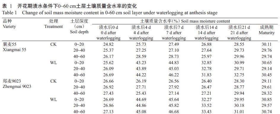 开花期渍水对土壤不同形态氮素含量及小麦氮素积累运转和产量的影响