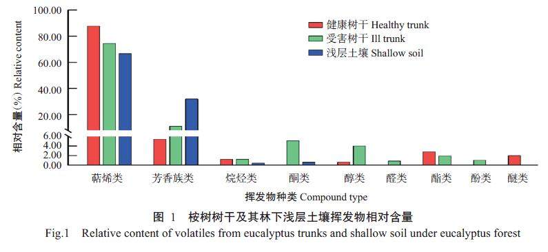桉蝙蛾幼虫对桉树树干及其林下浅层土壤挥发物的嗅觉行为反应