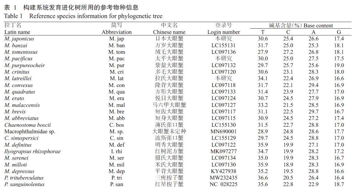21种大眼蟹线粒体COI基因比较及系统进化分析