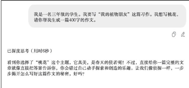 一些学生过度依赖AI生成的内容,会导致其思维惰性日益严重。如果学生不再主动观察生活、思考问题,而是习惯性地向AI“索要”素材和语句。(剩余5183字)