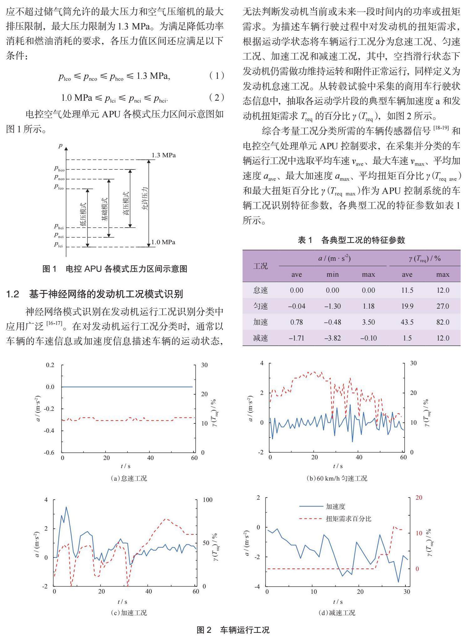 摘 要: 为改善商用车空气处理系统的燃油经济性,提出一种以基于电磁阀控制的电控空气处理单元(APU)控制策略,进行了Simulink 系统仿真实验。该策略具有基础、低压和高压等3 种工作模式;基于发动机工况识别和预测方法;利用Matlab/Simulink 搭建车辆模型和空气处理系统模型;并构建了神经网络模式识别和Markov 链预测控制模型对发动机的运行工况进行识别分类和需求扭矩百分比预测。(剩余10493字)