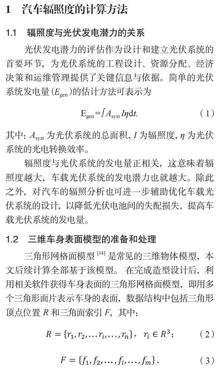 基于三维光线投射算法的全车太阳辐照度的细致分析