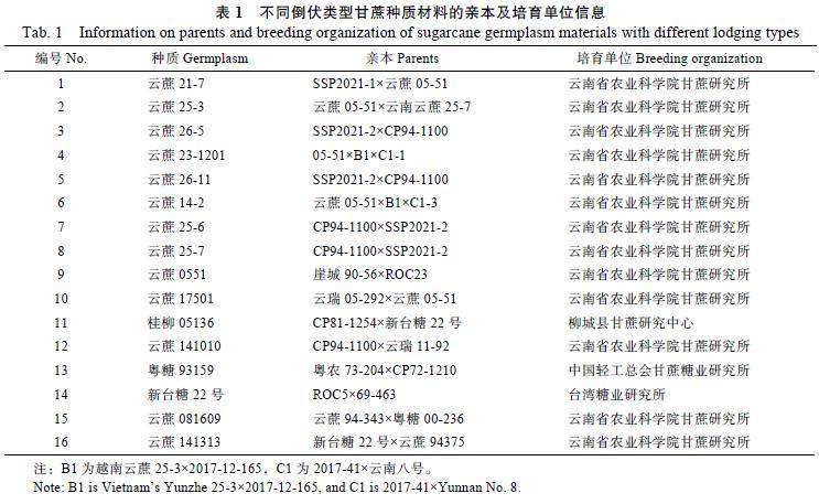 甘蔗种质材料的抗倒伏能力研究及其综合评价