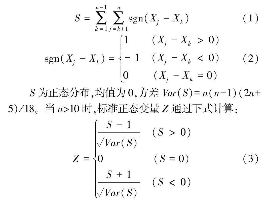 关键词:径流量;Mann-Kendall 法;累积距平法;小波变换法;趋势检验;泾河