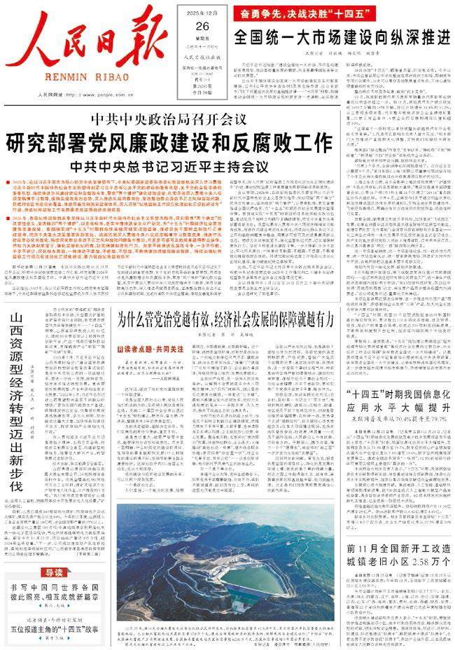 新华社北京12月25日电 中共中央政治局12月25日召开会议,听取中央纪委国家监委工作汇报,研究部署2026年党风廉政建设和反腐败工作。中共中央总书记习近平主持会议。