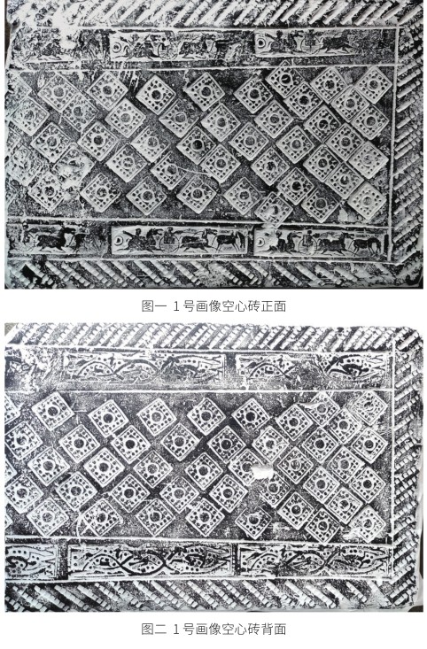 1号画像空心砖,泥质灰陶,矩形,残长62厘米,宽44厘米,厚14厘米。前后两面模印纹饰,两侧素面,完整一端可见一条形大孔,断面呈矩形,内孔呈圆角长方形。(剩余3463字)