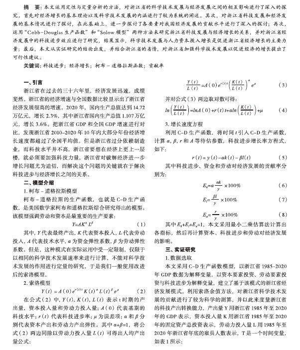 摘 要:本文运用定性与定量分析的方法,对浙江省的科学技术发展与经济发展之间的相互影响进行了深入的探究。首先对经济增长的基本理论以及科学技术发展的内涵进行了较为系统的阐述。其次,对浙江省科技发展和经济发展的基本情况进行了探讨,在此基础上,进一步探讨了各要素对我国经济发展的贡献水平进行了深入的探讨;再次,运用“Cobb-Douglas生产函数”和“Solow模型”两种方法来研究浙江省科技发展与经济增长的关系,并对浙江省经济发展中的科技进步效应进行了研究,结果显示,科学技术发展与人力资本投入增长是促进浙江省经济增长的主要力量;最后,本文从实证研究的结论出发,并结合浙江省的省情,对浙江省加强科学技术发展以促进经济的增长提出了可行性建议。(剩余4048字)