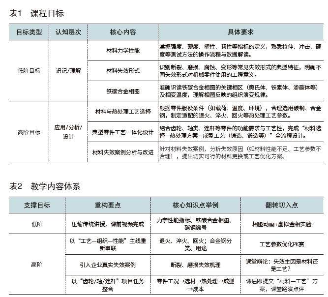 摘 要:文章以《工程材料及成型技术》课程为载体,基于成果导向教育(OBE)理念,反向设计低阶与高阶课程目标,重构“材料基础-工艺方法-失效分析-综合设计”四大教学模块。创新构建O-PIRTAS翻转课堂模式,通过“目标-准备-视频-回顾-测试-活动-总结”闭环流程,实现课前低阶知识习得与课堂高阶能力深化。(剩余5016字)