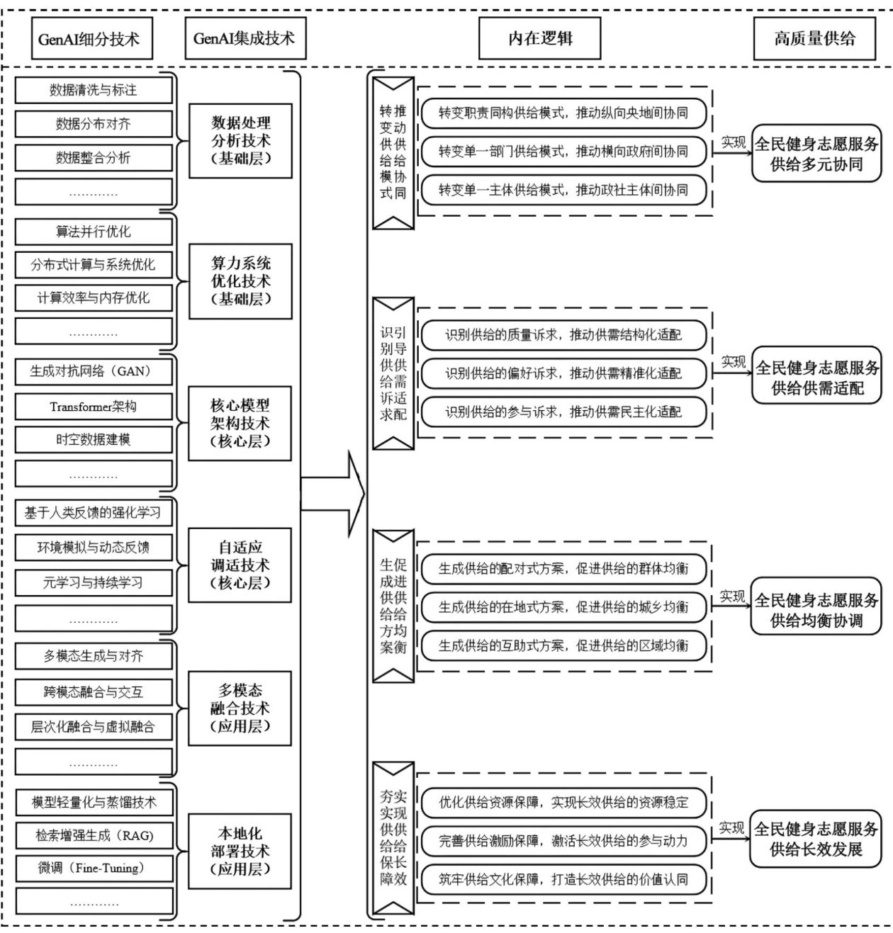 Abstract:Generative artificial intellgence,as a strategic technology forthenew round technological revolutionand industrialtransformation,isbecominganimportant drivingforceforempowering high-qualitysupplynational fitness volunter services.This study uses research methodssuch as literature review and logical analysis to explore the theoretical logic,application scenarios,practical challenges,and implementation paths generative artificial intellgenceempowering high-qualitysupplynational ftnessvolunteerservices.The study suggests that the inherent logic empowering high-qualitysupply national fitnessvolunteer services with generativeartificial inteligence is reflected in the folowing four dimensions:transforming thesupplymodel to promote supplycoordination,identifying supply demands to guide supply and demand adaptation,generating supply plans to promote supply balance,and consolidating supply guarantees to achieve long-term supply effectivenessAt present,the application scenarios generative artificial intelligenceempowering national fitnessvolunteerservicesinclude empowering inteligent implementation national physical fitnessmonitoring,scientificoperation sportsand fitness guidance,refined teaching sportsskills,and normalized development health knowledgepopularization.However,itstill faces practical challenges such as untimely transformation supply models,inaccurate identification supply demands, unscientific generation supply plans,and insufficient implementation supplyguarantees before itis fully matured and implemented.Based onthis,it isproposed to accelerate theupdate policiesandsystems to promote the timely transformation supplymodels,conduct in-depthgovernance dataand information to ensure accurate identification supply demands,embed advanced technology application to support the scientific generation supply plans,and improve the intellgent supply foundation to supervise the fullimplementation supply guarantees.