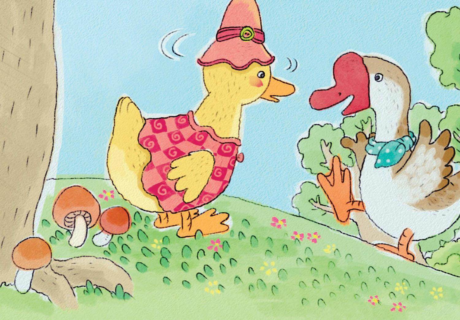 这是小鸭子搬到森林后第一次出门玩耍。