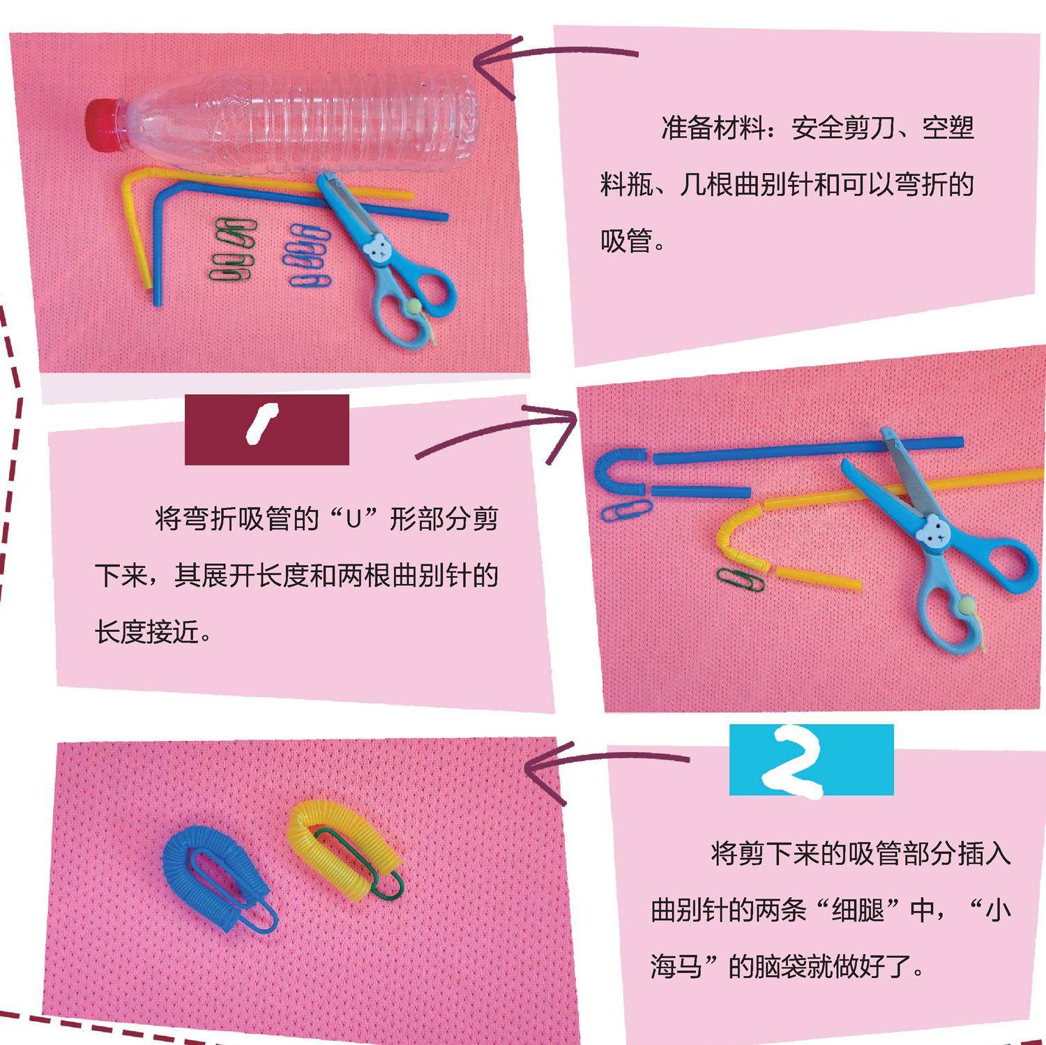 2将剪下来的吸管部分插入曲别针的两条“细腿”中,“小海马”的脑袋就做好了。(剩余661字)