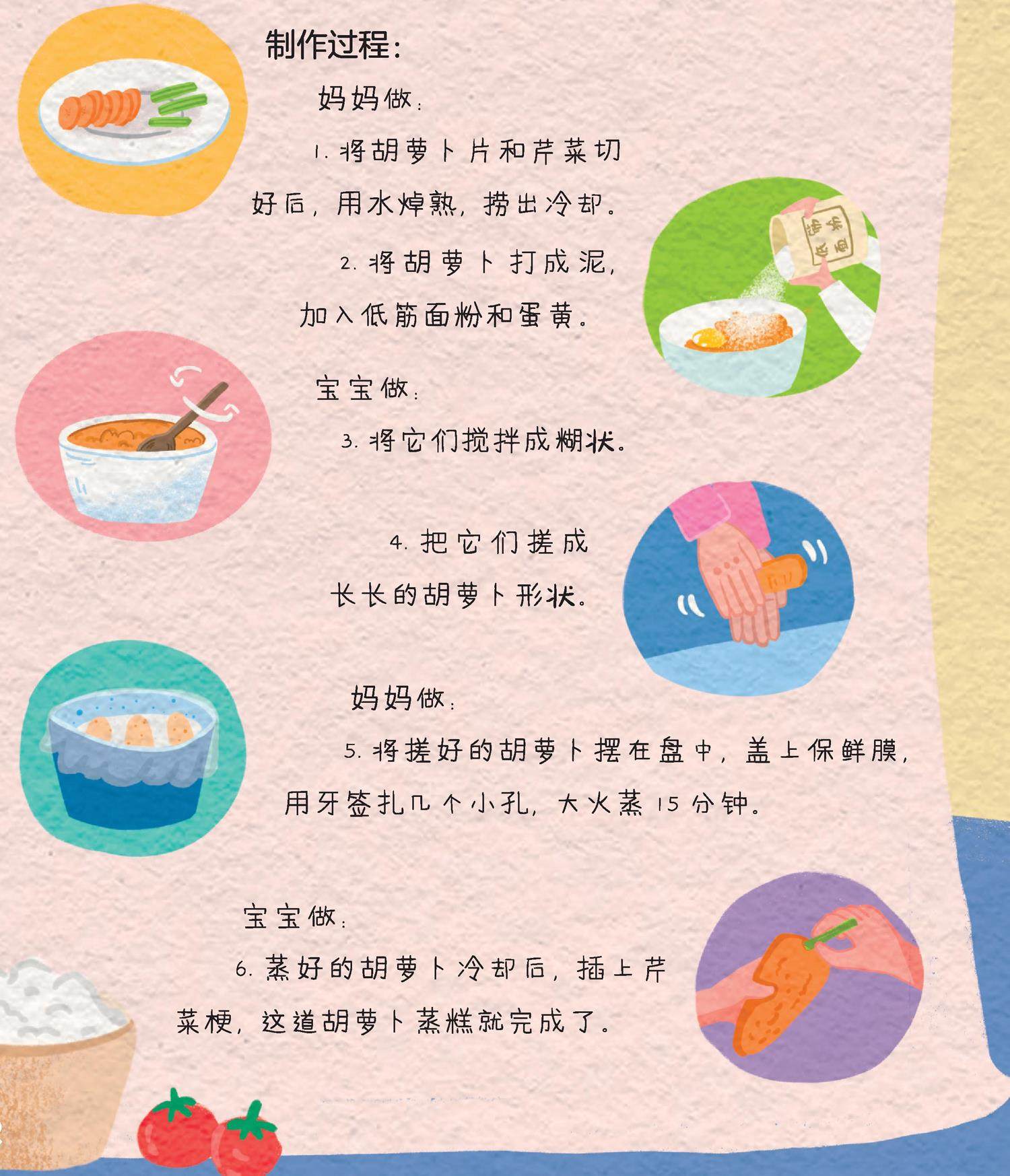5.将搓好的胡萝卜摆在盘中,盖上保鲜膜,用牙签扎几个小孔,大火蒸15分钟。(剩余109字)