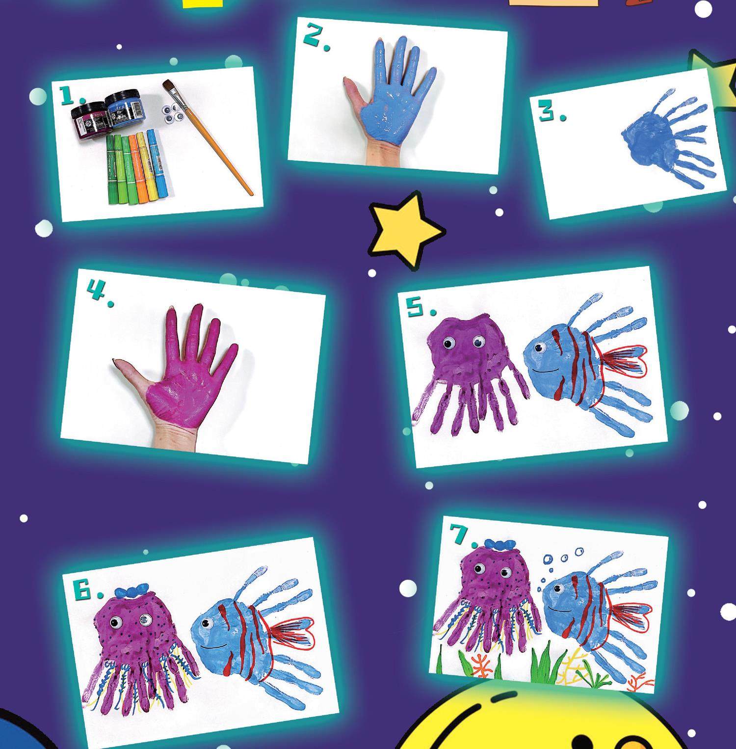 除了画笔,小手、小脚也是涂鸦的好工具。手掌画为幼儿提供了一个尽情施展才艺的空间,能更大程度地释放幼儿的天性,促进手眼协调发展。