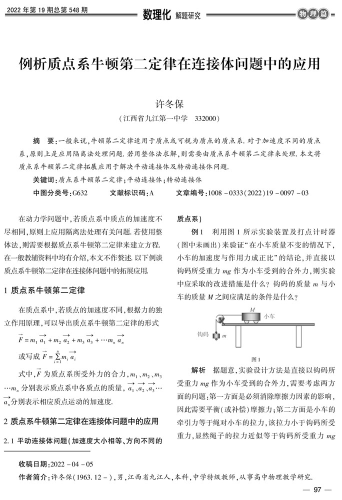 例析质点系牛顿第二定律在连接体问题中的应用