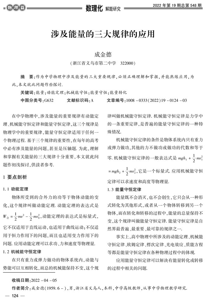 在中学物理中,涉及能量的重要规律(剩余580字)