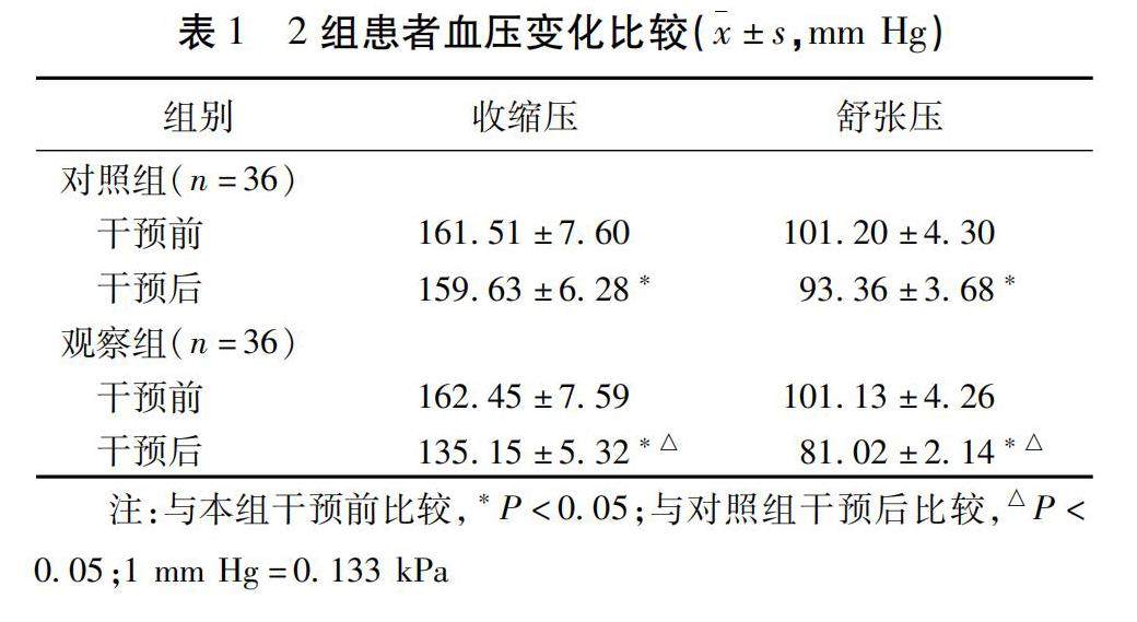 摘要 目的:观察综合干预改善老年高血压住院患者睡眠质量的应用效果。方法:选取2022年5月至2023年5月福建医科大学附属协和医院收治的老年高血压住院患者72例作为研究对象,按照随机数字表法分为对照组和观察组,每组36例。对照组采用常规护理,观察组采用综合干预。结果:干预后,观察组收缩压、舒张压、睡眠质量评分、焦虑自评量表(SAS)、抑郁自评量表(SDS)评分低于对照组,差异有统计学意义(P<0.05);观察组生命质量评分高于对照组,差异有统计学意义(P<0.05)。(剩余6833字)