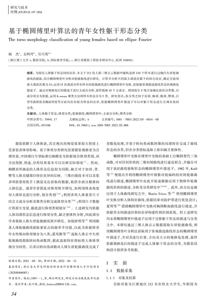 基于椭圆傅里叶算法的青年女性躯干形态分类